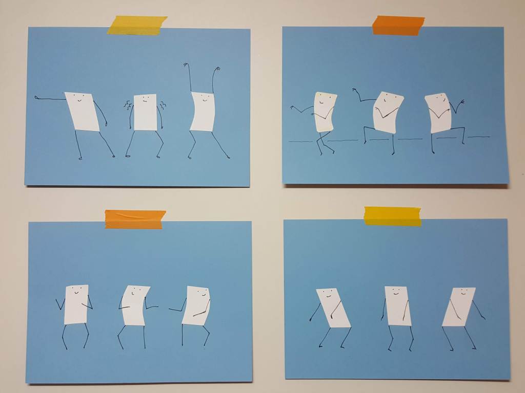 The sketches from the rice cakes dancing Thriller were too cute, so I “filmed” them dancing a Thriller tutorial. As one does. (When one does not yet know how to animate.)