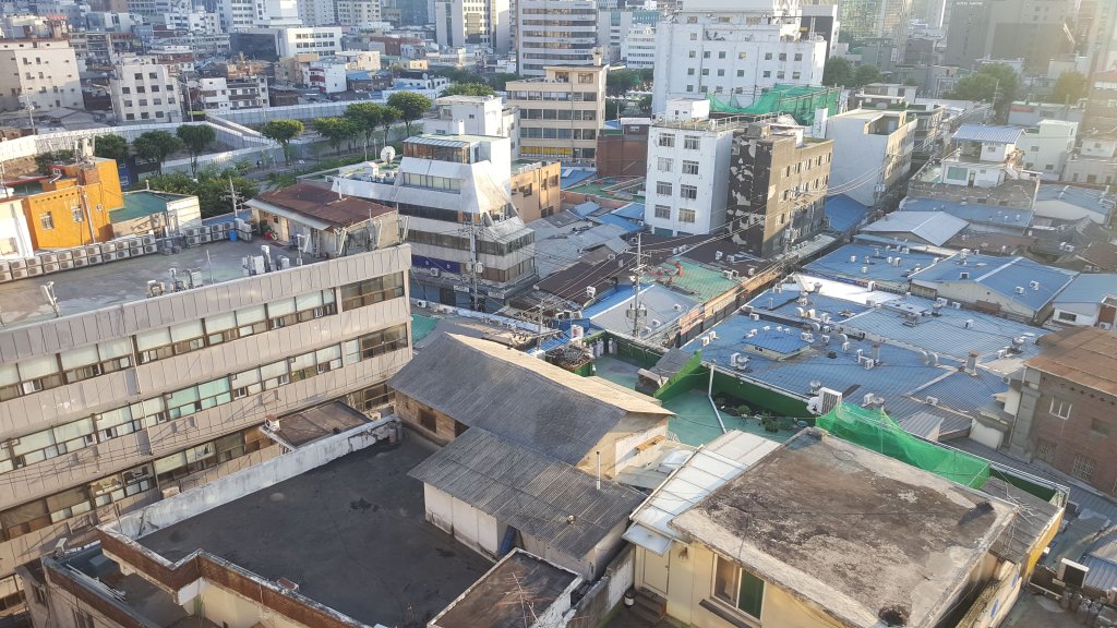 As much as I love hipster coffee shops and handicrafts sellers, what really impressed me when I first visited was the view from the roof. You can take the elevator (located at the end of the plaza near the view of Jongymyo shrine) to the ninth floor to the rooftop.