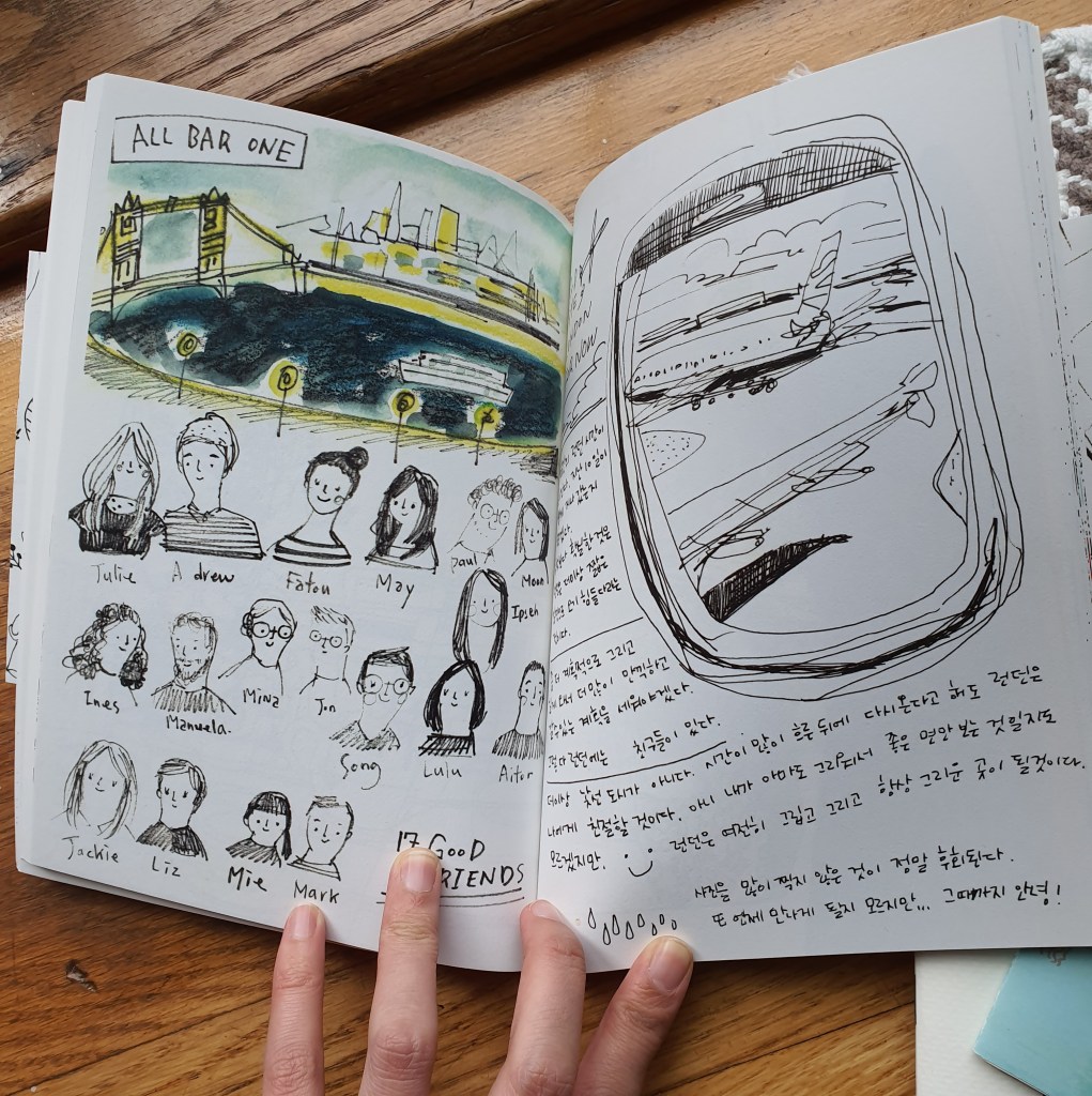 The Drawing Hand is a visual artist I had discovered on IG and later had the pleasure to meet at the Seoul Illustration Fair and at her open studio. I love her use of color and her warm, cozy characters. She’s self-published several of her drawing books; this is her sketchbook from London. IG: @jejeviva