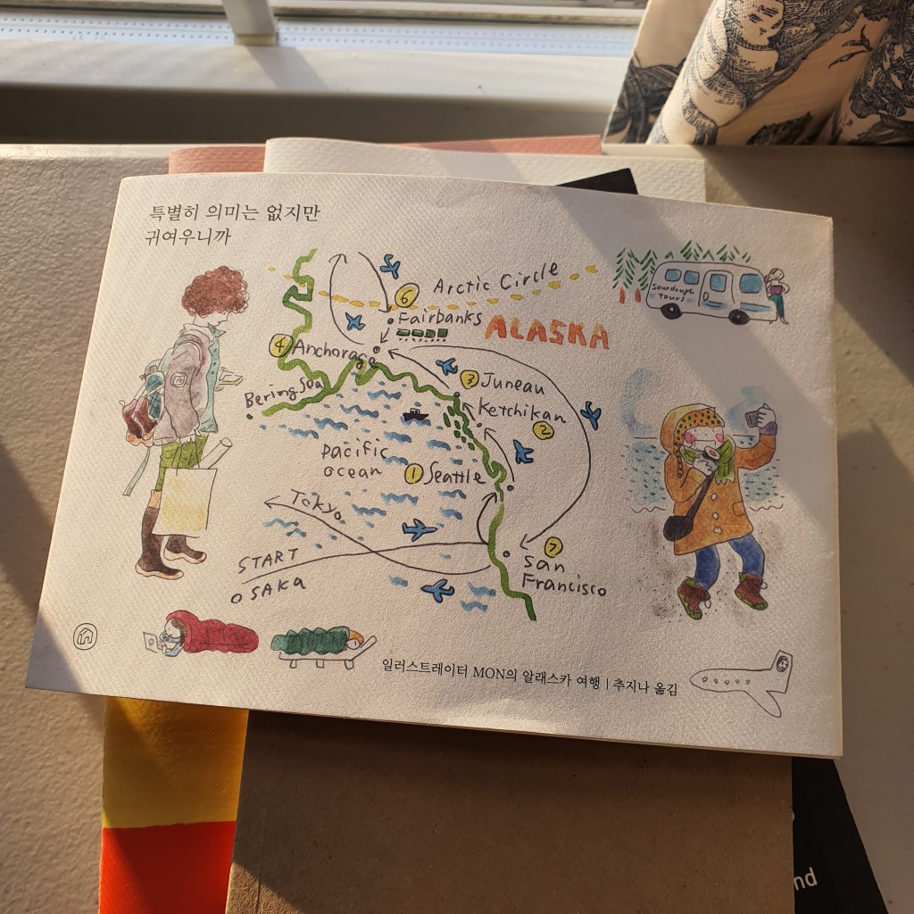 This Alaska travel journal was one of the first books I bought at an indie bookstore in Korea. The author, MON, is a Japanese illustrator and I loved the mix of the photos, drawings and explanations. It’s printed on this newsprint-like paper that just adds to its homey charm. I also used this book’s physical dimensions as a reference for my own self-published book, Love Dad.