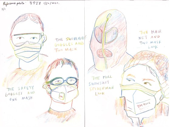I drew this from the cover of the Joongang Ilbo newspaper last week. The photo was of travelers from China … More
