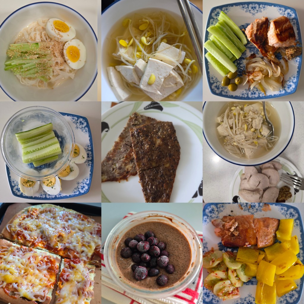 Early on, brimming with motivaton, I tried a miso-glaze on my baked salmon… and learned miso burns quickly and the effort to marinate fish wasn’t really worth it to me. I asked AI to make me a healthy brownie recipe with basically eggs, chia seeds and cacao powder, and ended up with this crepe-like cocoa omelette because apparently I didn’t mix the eggs enough. I learned my lesson and did fully blend the cottage cheese and eggs for the “viral” cottage cheese flatbread, which I turned into a cheese pizza. (It was fine, and it scratched the pizza itch.) Is cottage cheese easy to find in Korea, you ask? No, no it is not. But more on that later.