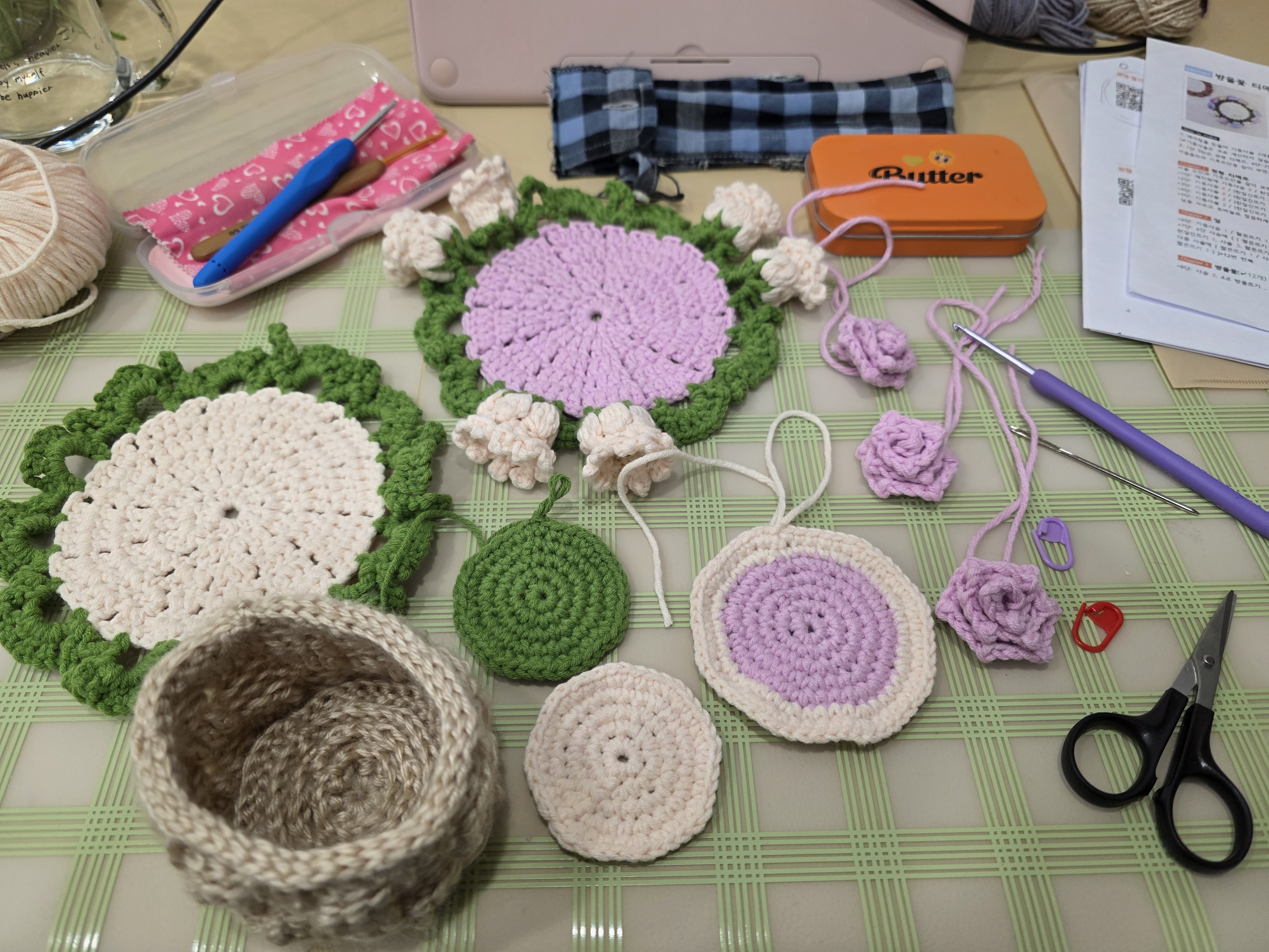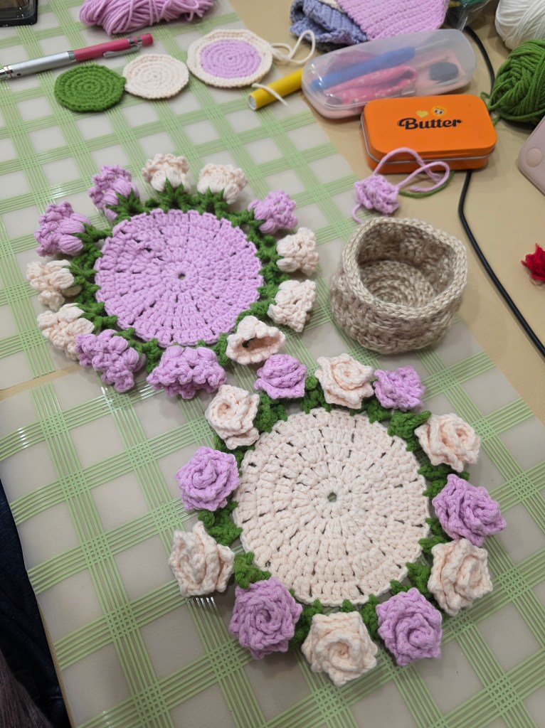 The crocheting slowed down a bit during the lunar new year holiday and a quick trip to Busan, but did not stop. I even worked on my flower coaster on the train back to Seoul.