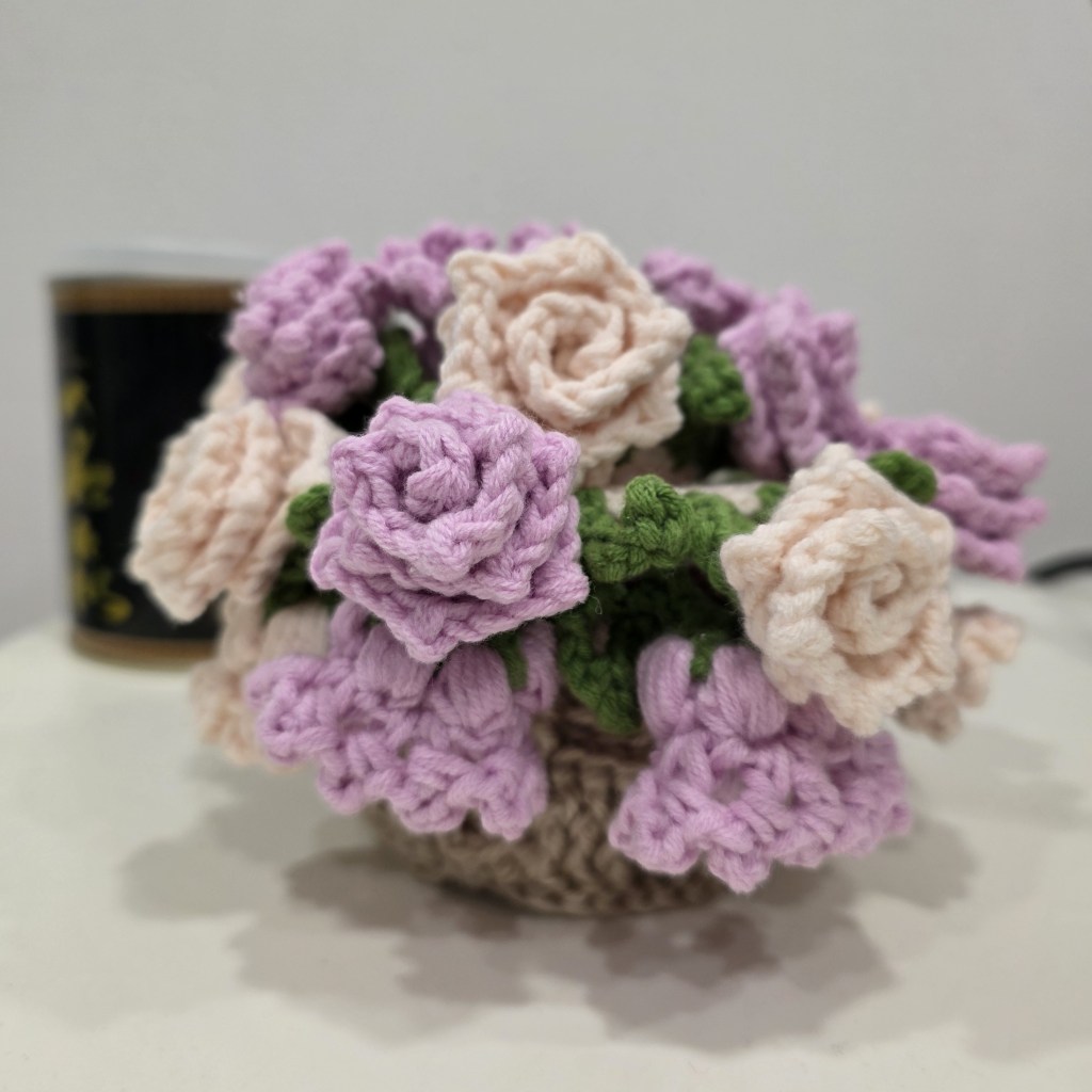 And finally finished both the rose and lily of the valley coasters towards the end of the month. I don’t think I’ll actually be using them as coasters. For now they are sitting pretty as a basket bouquet on my table.